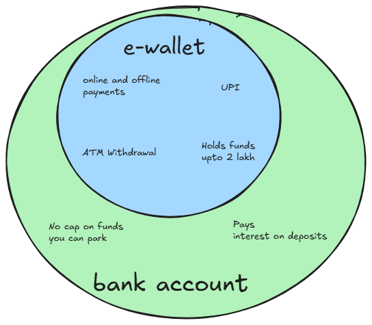 An e-wallet holder today can do the same things that a traditional retail bank account holder does - park funds, make offline payments, pay bills and most importantly - pay through UPI to merchants and friends. E-wallets don’t compete with UPI anymore. Regulatory intervention has ensured that you can pay through your e-wallets using UPI (just like bank accounts). Now, I’m not arguing that an e-wallet can perfectly substitute a retail bank account for everyone. It is still not as feature rich as a bank account. For example, e-wallets don’t pay any interest on deposits (unlike bank accounts). However, recent trends suggest that bank accounts are themselves increasingly being seen as payment wallets instead of traditional ‘savings’ instruments. Customers looking for returns are turning to mutual funds or gold, as opposed to bank accounts. Likewise, e-wallets also come with an INR 2,00,000 (roughly USD 2,300) monetary cap on the amounts they can hold. Again, that’s not that big of a deal for most people as the average ticket sizes for retail payments remain small.3