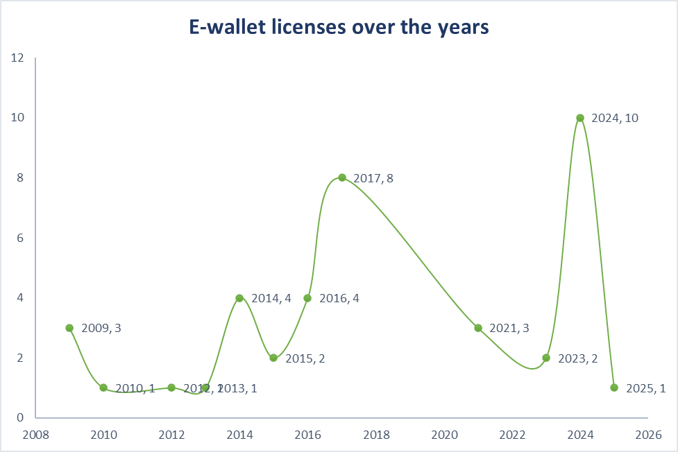 2024 saw the highest number of e-wallet licenses1 being issued in a year ever. What’s more interesting is the diversity of applicants who got these licenses - fintechs across the spectrum. For example, Jupiter has a neobank offering at the heart of things. While Cred primarily does credit card payments. So, what gives?